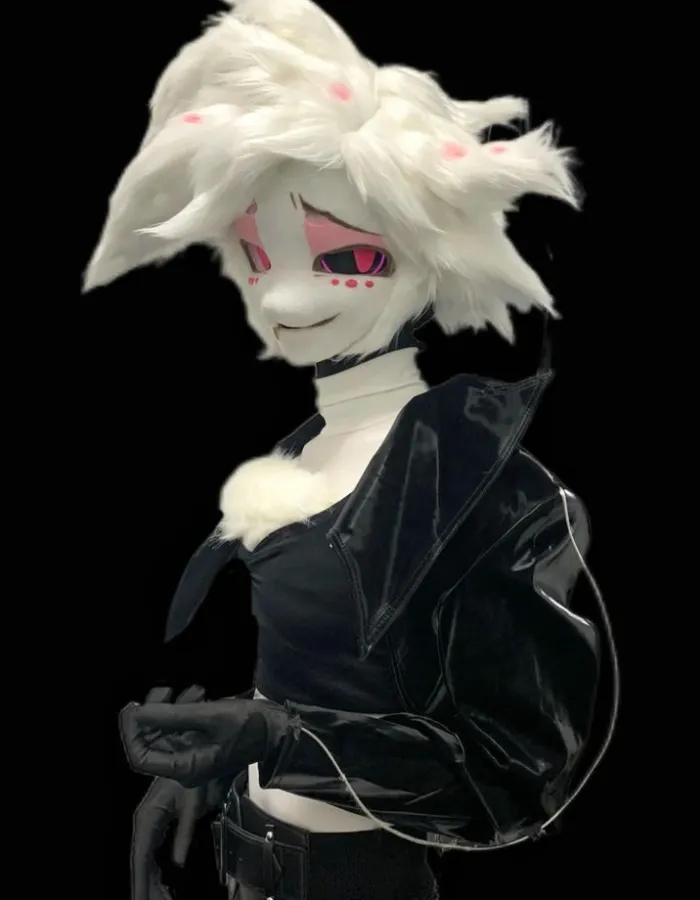 Angel Dust Head is a high-quality custom fursuit head with a lot of detail, plush faux fur and big eyes to make it look unique. This is a one of a kind character piece that is comfortable and durable enough to be used at conventions, cosplay, and furry events. The Angel Dust Head is a product that combines the element of personality and quality craftsmanship into a single design with care and detail, by Fursuit Crafts.
