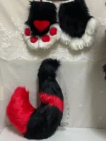 Home Kemono Fursuit Black White Red Fox Heart & Spider Tie Full Partial Fursuit