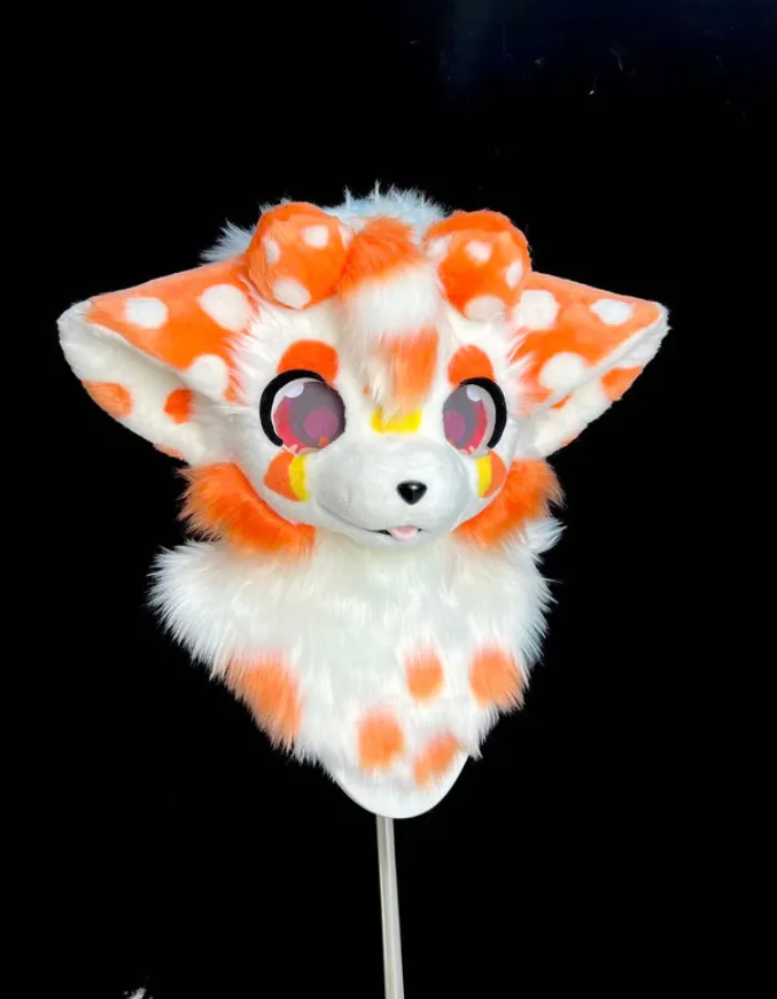 The fursuit head of a mushroom is the main part of the whole costume. The sculpted shape is made to give the impression of the mushroom themes that have a soft rounded look without losing out on characters. The facial features including the eyes, cheeks and muzzle are designed to bring out a balance between cuteness and personality thus making the character be immediately recognizable.